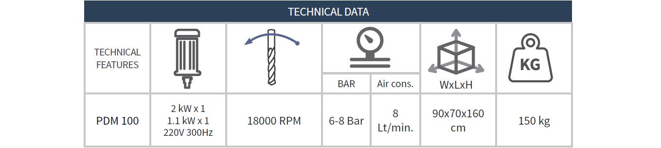1 pc. Vertical and 1 horizontal copy milling motor are available. (1 x 2 kW & 1 x 1.1kW 18.000 rpm)